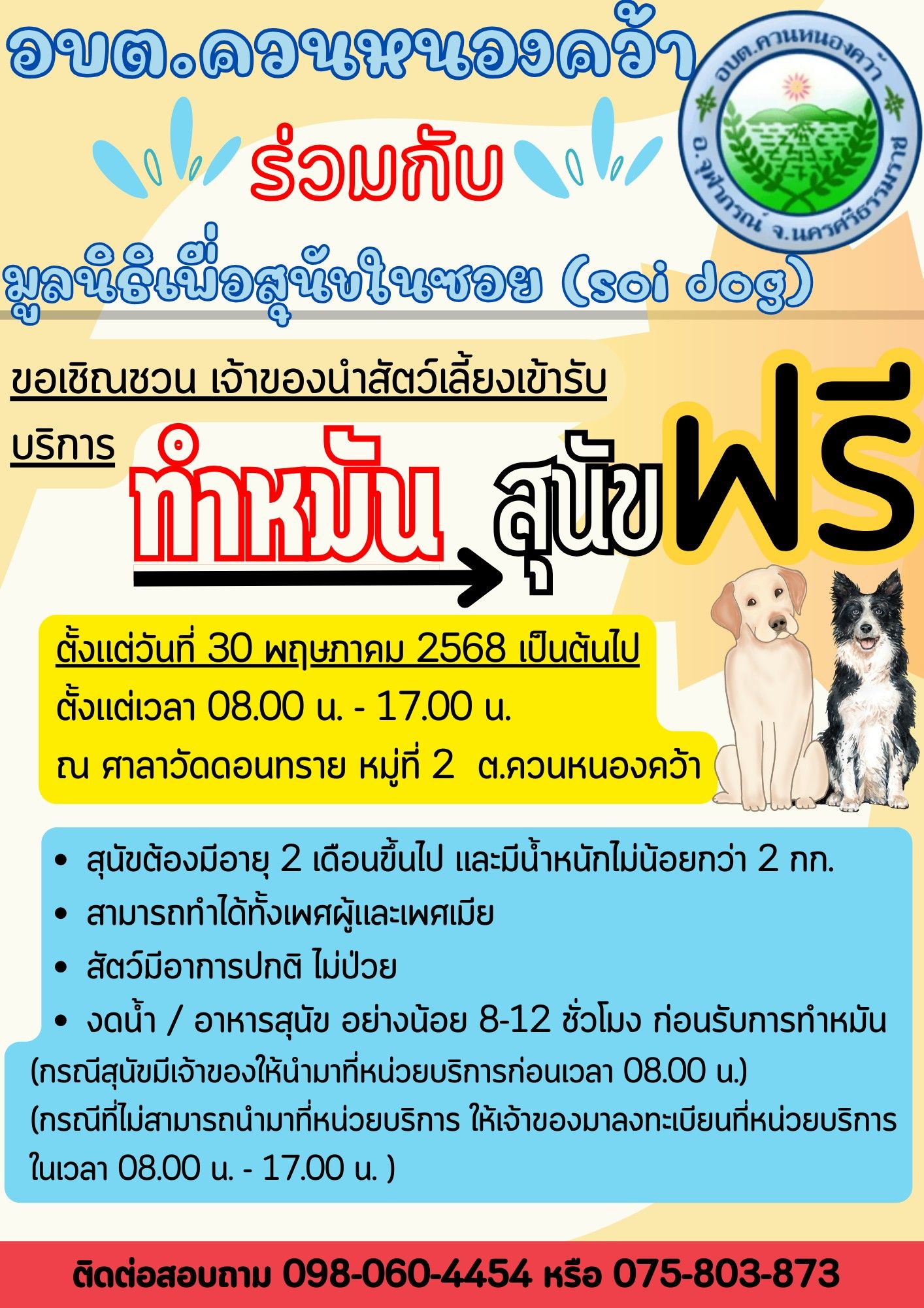 ของเชิณชวน เจ้าของนำสัตว์เลี้ยงเข้ารับบริการ ทำหมันสุนัข ฟรี ![]()